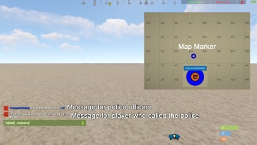 You can also call the police as a player by command. Police officers on duty will be notifyed in chat with a sound feedback and a map marker will be displayed on the map