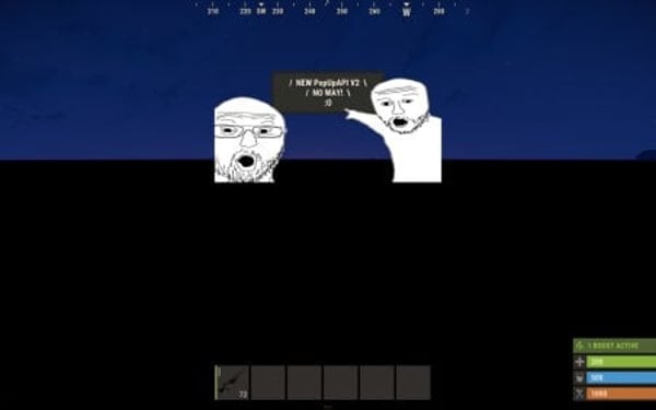 void API_ShowPopup(BasePlayer player, string text, float time = 10f, string parent = "Hud.Menu", int fontSize = 25) #(Deprecated) Shows pop-up in old 1.0 format. For older plugins.