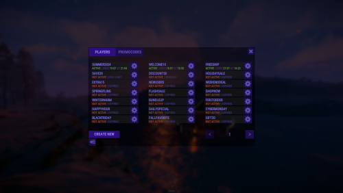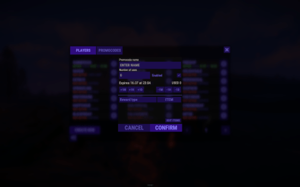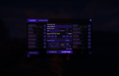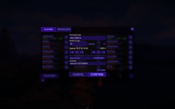 - Ability to replace item issuance with the execution of a specific server command when the promo code is activated.