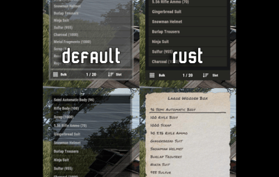 You can customize how the quick loot panel looks with a variety of options. To do so you will need to create a style preset. By default, this plugin auto-generates a few of them that you can use for reference. They are located within the "oxide/data/QuickLoot/styles" folder. To create a new style preset, simply copy one of them existing ones and edit the values. The load this preset, set the "StylePreset" property in the config file to the name of the preset file you created. I HIGHLY recommend creating your own preset instead of editing an existing one, because the existing ones may be overwritten if you have "GenerateDefaultStyles" set to "true" in the config.