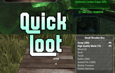 - quickloot.storage.take - View and take items from storage containers, such as chests, furnaces, and other deployables.