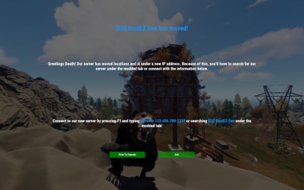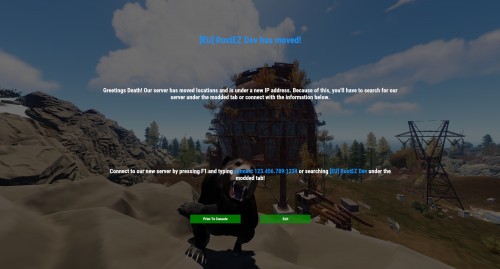 Display a GUI splash screen to players after they wake up with information in the event your server is migrating to a new host. Configuration options included to either kick the player or let them play after they exit the screen.