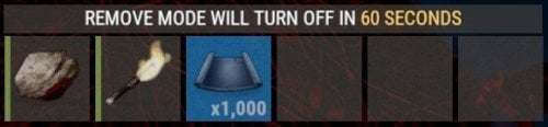 Quote{ "Allow friends to remove buildings": true, "Allow buildings authorized in the closet to break buildings": false, "Remove/upgrade duration": 60, "Allow removal during raid block": false, "Percentage of returned resources from buildings": 100.0, "Blocking the removal of an object after its construction after a certain time (seconds) [-1 - disable]": 7200, "GUI": { "offsetmin": "-200 80", "offsetmax": "180 100", "anchormax": "0.5 0", "anchormin": "0.5 0", "Background color": "0.97 0.92 0.88 0.18" } }