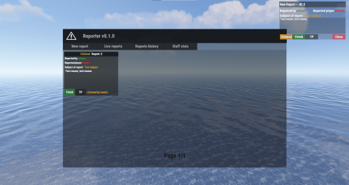 Admins can manage live reports in real-time, teleport to report creators, claim reports, and resolve them with ease.