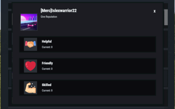 Players can reward each other for being Helpful, Friendly, or Skilled, earning spendable reputation points that can be redeemed instantly for configured items. As players gain reputation, they climb ranks and can trigger configurable server commands on rank-up for additional rewards or other triggers (kits, mail, permissions, VIP perks, etc.).