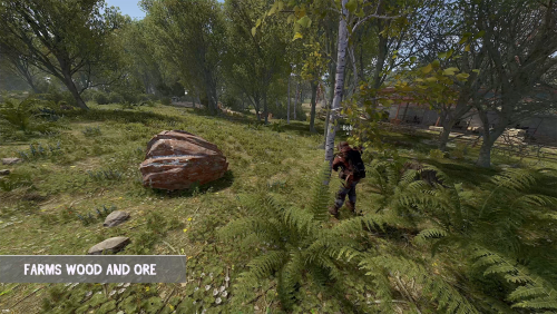 • Bots harvest wood, stone, metal, and sulfur using tools like rocks, hatchets, or pickaxes.