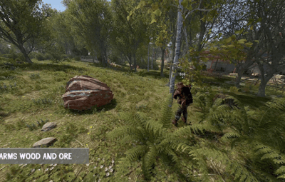 • Bots harvest wood, stone, metal, and sulfur using tools like rocks, hatchets, or pickaxes.