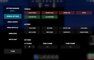 This allows for the arena owner to maintain various settings for that arena such as kits, arena whitelists, arena bans, map change menu, transfer ownership menu, and various other options such as headshots only, etc.