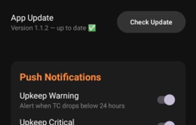 - Accurate upkeep time remaining