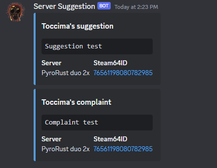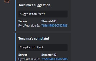 The plugin enables players to provide suggestions and complaints using chat commands which will be sent directly to discord using a webhook.