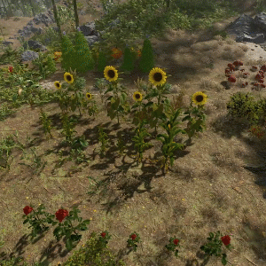 Each collectable spawns with a random scale within a configurable range (default: 0.6x to 2.0x). The size directly affects the yield — for instance, harvesting a hemp plant that’s twice as large as normal will reward twice the usual amount of cloth.