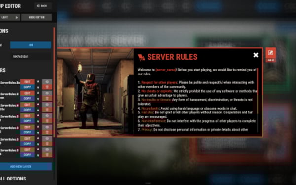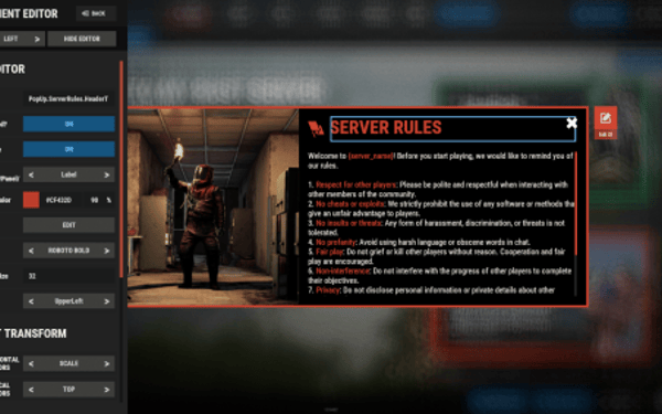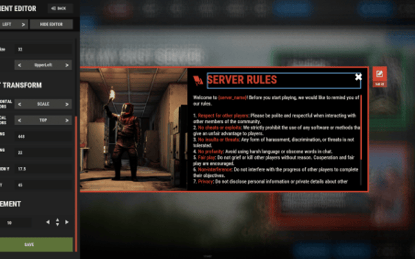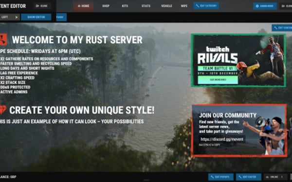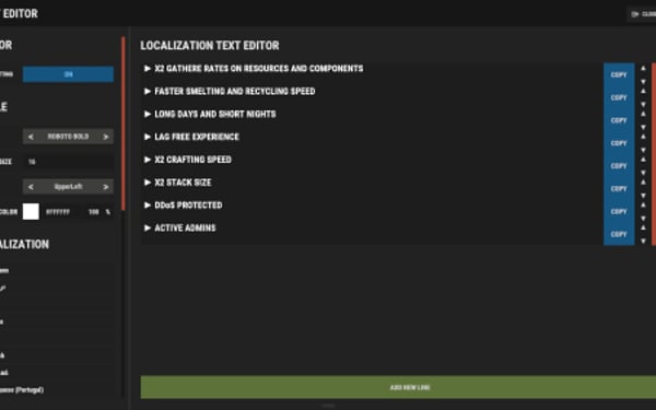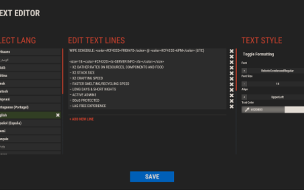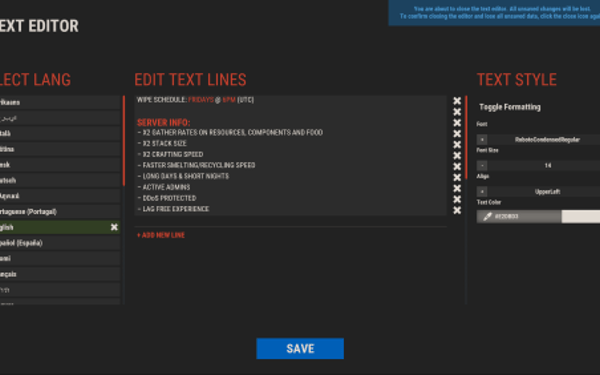 - Open "oxide/config/ServerPanel.json" (or "carbon/config/ServerPanel.json" for Carbon)