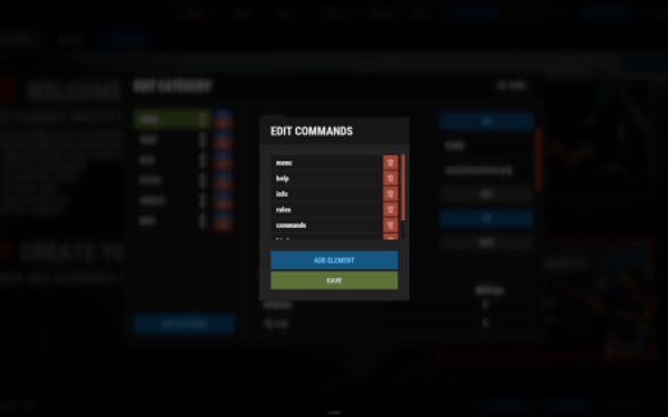 "Commands"field to"chat.say /command"(replace "command" with the actual plugin command)