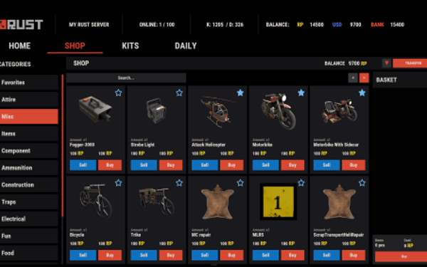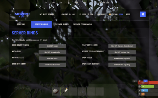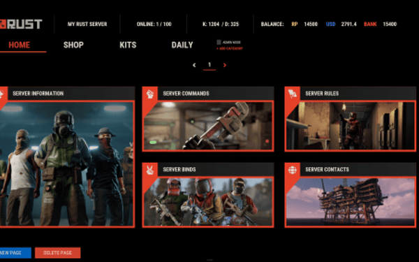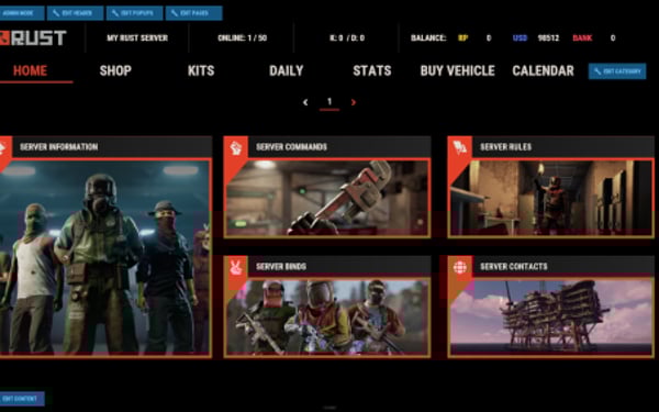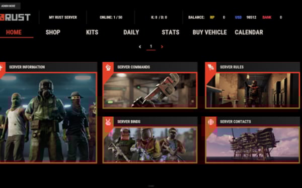 Note: Economy fields are fully customizable in "oxide/config/ServerPanel.json" under "Economy Header Fields". You can add support for any economy plugin by configuring the appropriate hooks (Add, Balance, Remove). Custom keys can be created and used in templates just like the default ones.