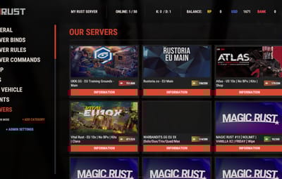 Introducing Servers, a powerful and customizable plugin that enhances your Rust server with a beautiful server browser interface! Allow your players to easily browse, view details, and connect to other servers in your network with this sleek, feature-rich plugin. Whether you're running a single server or managing a network of multiple Rust communities, Servers gives your players a seamless way to explore all your offerings.