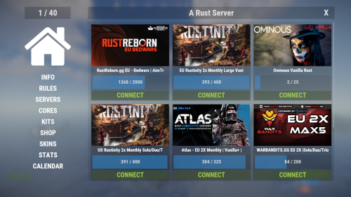 Easily display all your servers within a very clean a simple UI. Even put a quick connect button for people to instantly connect to the server!