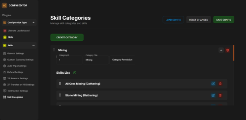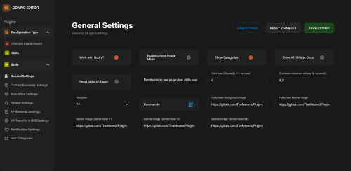 Easily manage your Skills settings with our web-based configuration editor. This tool allows you to adjust plugin configurations through a user-friendly interface, eliminating the need to manually edit files on your server.
