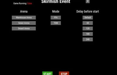 Description: Displays a UI to start the game with. Allows for arena, mode and lobby delay to be selected.