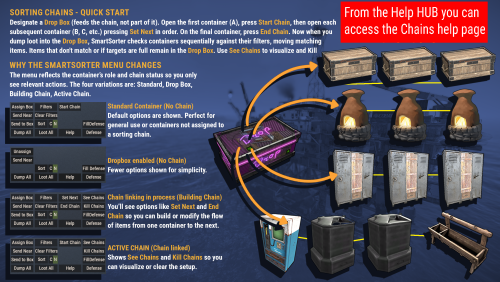 Transform your Rust base management with Smart Sorter - the ultimate automated inventory system that gives you back your most valuable resource: TIME. Stop manually sorting loot. Stop running between boxes. Stop re-arming turrets one by one. Smart Sorter handles it all with intelligent automation and an intuitive visual interface.