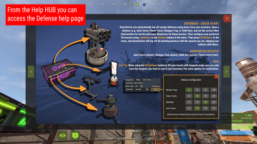 - Auto-fill turrets, SAM sites, flame turrets, shotgun traps