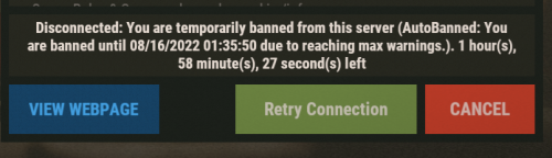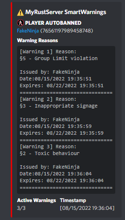 - With this feature Enabled a player will be Automatically Banned when reaching the configured Warning amount or Warning Points.