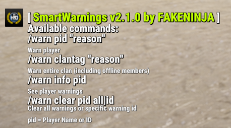 - Dispatches a warning with a custom reason or preset to an entire clan (Requires Clans plugin)