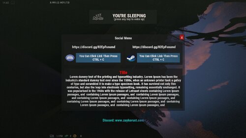 { "discordnote": "Dc :{0}\nYou can copy it by selecting the link above and then press ctrl + c.", "steamnote": "Steam: {0}\nYou can copy it by selecting the link above and then press ctrl + c.", "socialmenutitle": "Social Menu", "socialmenudescription": "<size=22><color=#FF0000>Title</color></size>\n Lorem dummy text of the printing and typesetting industry. Lorem Ipsum has been the industry's standard dummy text ever since the 1500s, when an unknown printer took a galley of type and scrambled it to make a type specimen book. It has survived not only five centuries, but also the leap into electronic typesetting, remaining essentially unchanged. It was popularised in the 1960s with the release of Letraset sheets containing Lorem Ipsum passages, and containing Lorem Ipsum passages, and containing Lorem Ipsum passages, and containing Lorem Ipsum passages, and containing Lorem Ipsum passages, and containing Lorem Ipsum passages, and containing Lorem Ipsum passages, and containing Lorem Ipsum passages, and containing Lorem Ipsum passages, and ", "socialmenucopybutton": "You Can Click Link Then Press CTRL + C", "discordgivepaper": "Discord Link Paper in Your Inventory", "steamgivepaper": "Steam Link Paper in Your Inventory", "plugin_pre_tag": "<color=#FF0000>[Social Links] :</color>" }