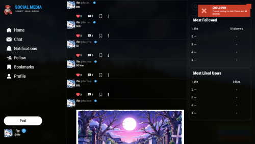 - Dynamic Posting System: Text & Image Support, Hashtag Integration, Reactions & Bookmarks, Reactions & Bookmarks