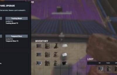 Players can open an upgrade interface while looking at a solar panel and holding a hammer, then install custom parts by dragging them into specific slots. The menu input button is fully configurable, supporting RELOAD, USE, MIDDLE CLICK, and RIGHT CLICK.