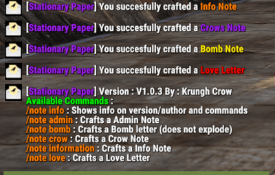 - Admin Note cant be rewritten or crafted if a player doesn't have the stationarypaper.admin permission assigned (to avoid abuse)
