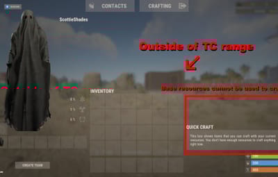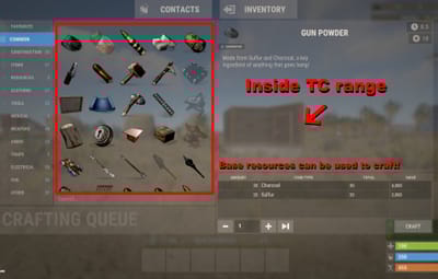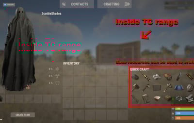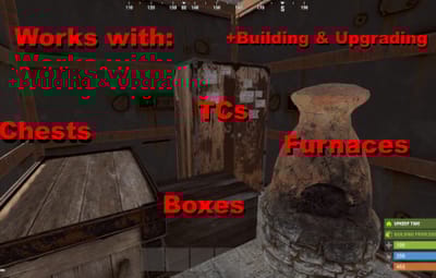 If a player is within their TC range, they will automatically have access to their base supplies. By default the SuperCrafting range is set to TC range, however this can be modified with the configuration file. Optionally, Admins can set a per-player SuperCrafter range for VIP players! See below for commands.