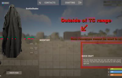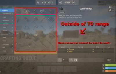 If a player is within their TC range, they will automatically have access to their base supplies. By default the SuperCrafting range is set to TC range, however this can be modified with the configuration file. Optionally, Admins can set a per-player SuperCrafter range for VIP players! See below for commands.