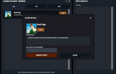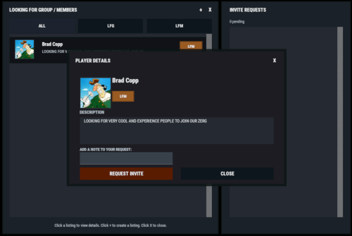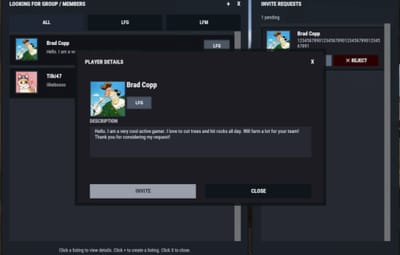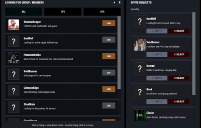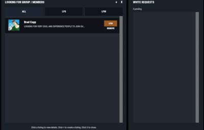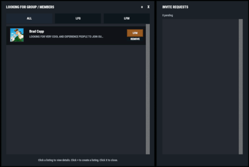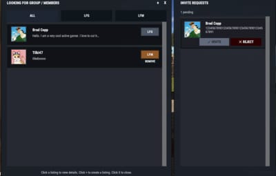 - LFG (Looking for Group): solo players post a listing with a description. These listings are public and team leaders can easily invite players.