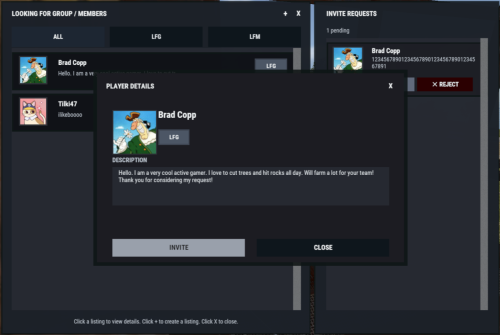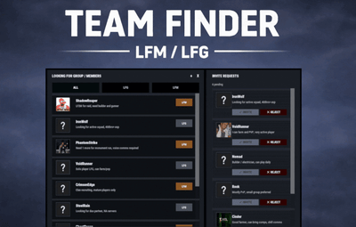 - LFM listings: solo players can request an invite to join that team.