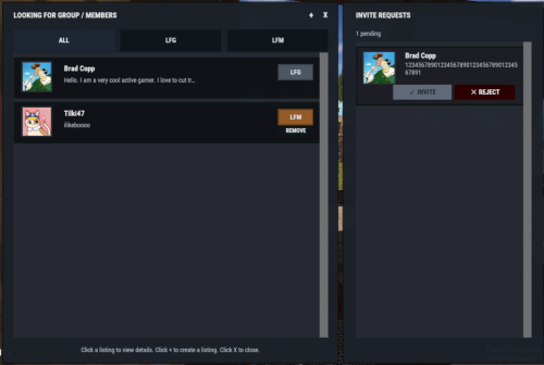 LFG + LFM Listings
