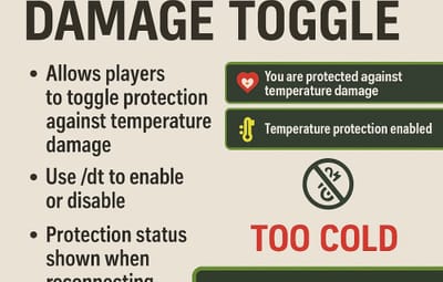 - temperaturedamagetoggle.use -- Allows the player to use chat commands