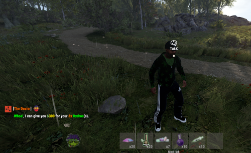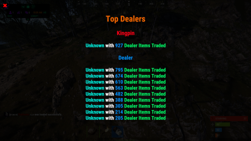 { "In Demand Item Setup": { "Max In Demand Items": 5, "Min In Demand Multiplier (USE INTS FOR CUSTOM CURRENCY ITEMS 1,2,3 ETC.)": 0.1, "Max In Demand Multiplier (USE INTS FOR CUSTOM CURRENCY ITEMS 1,2,3 ETC.)": 0.5, "In Demand Item Cycle Time In Minutes": 120 }, "Enable Reputation Levels?": false, "Wipe Reputation Levels On Wipe?": false, "Wipe Sale Data Leaderboard On Wipe?": false, "Announce Top Ranks To Discord?": false, "Announce Top Ranks To Chat?": false, "Enable Kingpin Overtakes?": false, "Minimum Amount of Items Traded to Be earn Kingpin?": 10000, "Kingpin Group Name?": "Kingpin", "Announcement Interval In Seconds? 0 = Disabled": 0, "Discord Webhook URL For Top Ranks": "INSERT_WEBHOOK_URL", "Reputation Levels 0.01 = 1% Boost To Sales (Increases Base Sale Price, Keep in Mind Variation Settings)": { "1": { "Items To Be Sold To Advance Current Rep Level": 200, "Bonus Percentage For This Rep Level": 0.01 }, "2": { "Items To Be Sold To Advance Current Rep Level": 300, "Bonus Percentage For This Rep Level": 0.02 }, "3": { "Items To Be Sold To Advance Current Rep Level": 400, "Bonus Percentage For This Rep Level": 0.03 }, "4": { "Items To Be Sold To Advance Current Rep Level": 500, "Bonus Percentage For This Rep Level": 0.04 }, "5": { "Items To Be Sold To Advance Current Rep Level": 550, "Bonus Percentage For This Rep Level": 0.05 }, "6": { "Items To Be Sold To Advance Current Rep Level": 600, "Bonus Percentage For This Rep Level": 0.06 }, "7": { "Items To Be Sold To Advance Current Rep Level": 750, "Bonus Percentage For This Rep Level": 0.07 }, "8": { "Items To Be Sold To Advance Current Rep Level": 800, "Bonus Percentage For This Rep Level": 0.08 }, "9": { "Items To Be Sold To Advance Current Rep Level": 950, "Bonus Percentage For This Rep Level": 0.09 }, "10": { "Items To Be Sold To Advance Current Rep Level": 1000, "Bonus Percentage For This Rep Level": 0.1 } }, "Log Burner Phone uses to Discord?": false, "Prefab path of the Container to spawn a Burner Phone in": "assets/bundled/prefabs/radtown/crate_normal.prefab", "Min amount of Burners to spawn": 1, "Max amount of Burners to spawn": 2, "Chance to spawn a Burner Phone in a container (0 = 0%, 100 = 100%)": 20, "Burner Skin": 3273293561, "Chance To Notify Police?": 80, "Mini Toast Image": "https://www.dropbox.com/scl/fi/hjfifjdd5esv01i5xxylf/miniGlow.png?rlkey=iz8gher6qynaro9oj3r8niamp&st=ei6x54qf&dl=1", "How long before Dealer Despawns in Seconds": 60, "Use Permission Name": "TheDealer.Use", "Discord Webhook URL": "INSERT_WEBHOOK_URL", "Chat Icon": 0, "NPC Kit Enabled?": false, "NPC Kit Name?": "", "Map Markers Enabled via Marker Manager Plugin?": false, "Maximum Amount of Items Sold at a Time": 3, "NPC Interaction Cooldown In Seconds": 3, "Economy Plugin - 1 Economics - 2 Server Rewards": 1, "Enable Custom Currency? (OVERRIDES ECONOMY PLUGIN)": false, "Custom Currency": { "Shortname": "paper", "Skin": 3347697156, "Custom Name": "Dirty Cash" }, "Tradeable Items": [ { "Item ShortName": "blood", "Item CustomName": "", "Skin ID": 0, "Is Marketable?": true, "Dealer Score (Leaderboard)": 1, "Sale Price?": 40, "Max Discount Buy Variation in %? (Negative Values) (To Simulate Supply & Demand)": -10, "Maximum Bonus Variation in %? (Positive Values) (To Simulate Supply & Demand)": 5 }, { "Item ShortName": "sticks", "Item CustomName": "", "Skin ID": 0, "Is Marketable?": true, "Dealer Score (Leaderboard)": 1, "Sale Price?": 100, "Max Discount Buy Variation in %? (Negative Values) (To Simulate Supply & Demand)": -10, "Maximum Bonus Variation in %? (Positive Values) (To Simulate Supply & Demand)": 5 }, { "Item ShortName": "glue", "Item CustomName": "", "Skin ID": 0, "Is Marketable?": true, "Dealer Score (Leaderboard)": 1, "Sale Price?": 250, "Max Discount Buy Variation in %? (Negative Values) (To Simulate Supply & Demand)": -10, "Maximum Bonus Variation in %? (Positive Values) (To Simulate Supply & Demand)": 5 }, { "Item ShortName": "bleach", "Item CustomName": "", "Skin ID": 0, "Is Marketable?": true, "Dealer Score (Leaderboard)": 1, "Sale Price?": 20, "Max Discount Buy Variation in %? (Negative Values) (To Simulate Supply & Demand)": -10, "Maximum Bonus Variation in %? (Positive Values) (To Simulate Supply & Demand)": 5 } ], "NPC Clothing Options": [ { "Shortname": "pants", "Skin": 838673197 }, { "Shortname": "hoodie", "Skin": 792923214 }, { "Shortname": "shoes.boots", "Skin": 2956831315 }, { "Shortname": "hat.cap", "Skin": 1492905789 } ] }