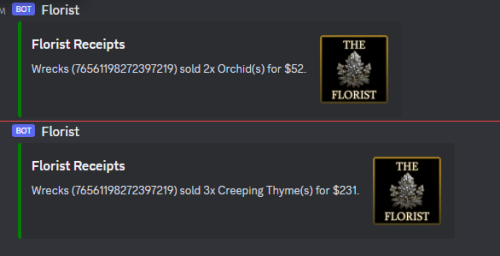 Output all Sales to Discord to track your Economy and make Adjustments as needed to The Florist NPCS "Bonus Buy” & "Discount Buy” as needed to suit your taste.