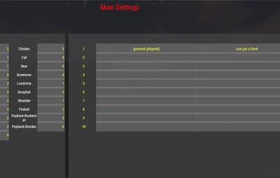 { "1. The Button Settings": { "1. Sign Picture URL": "www.noobhub.co.za/dont.png", "2. Cooldown Time on Button Press": 5, "3. Broadcast Button Action to Server": true, "4. Broadcast Font Size [18 default]": 18, "5. Send Discord embeds on punishments": false, "6. Discord WebHook URL": "https://support.discord.com/hc/en-us/articles/228383668-Intro-to-Webhooks", "7. Use Payback Plugin Punishments": true, "8. Timed C4 (false will be instant explosion": true, "9. Use Random location for swim location": true }, "2. Punishment Weights": { "Slap": 2, "Mlrs": 0, "Swim": 2, "Fall": 0, "C4": 1, "Bear": 0, "Scientist": 0, "Scarecrow": 0, "Radiation": 0, "Landmine": 1, "Cactus": 2, "Scrapheli": 2, "PVELord": 2, "Shredder": 2, "Guntrap": 1, "Fireball": 2, "ExplosiveDiarrhea": 2, "PayBack:Rocketman": 2, "Payback:Shark": 2, "Payback:Shocker": 0, "Payback:Naked": 0, "Payback:Chicken": 2, "Payback2:Train": 2, "Payback2:F15": 2, "BombVest:Boom": 0 }, "3. Custom Commands": { "CustomCommand1": { "CCname (DONT CHANGE THIS)": "customcommand1", "Command": "giverank {playerid}", "Message": "Just got a Rank", "Weight": 0 }, "CustomCommand2": { "CCname (DONT CHANGE THIS)": "customcommand2", "Command": "", "Message": "", "Weight": 0 }, "CustomCommand3": { "CCname (DONT CHANGE THIS)": "customcommand3", "Command": "", "Message": "", "Weight": 0 }, "CustomCommand4": { "CCname (DONT CHANGE THIS)": "customcommand4", "Command": "", "Message": "", "Weight": 0 }, "CustomCommand5": { "CCname (DONT CHANGE THIS)": "customcommand5", "Command": "", "Message": "", "Weight": 0 }, "CustomCommand6": { "CCname (DONT CHANGE THIS)": "customcommand6", "Command": "", "Message": "", "Weight": 0 }, "CustomCommand7": { "CCname (DONT CHANGE THIS)": "customcommand7", "Command": "", "Message": "", "Weight": 0 }, "CustomCommand8": { "CCname (DONT CHANGE THIS)": "customcommand8", "Command": "", "Message": "", "Weight": 0 }, "CustomCommand9": { "CCname (DONT CHANGE THIS)": "customcommand9", "Command": "", "Message": "", "Weight": 0 }, "CustomCommandA": { "CCname (DONT CHANGE THIS)": "customcommandA", "Command": "", "Message": "", "Weight": 0 } }, "4. Button Press Settings": { "Prefix": "Server", "Message": "{playername} Pressed The </color><color=red>RED</color><color=green> Button and" } }