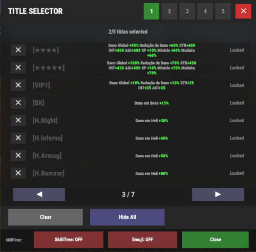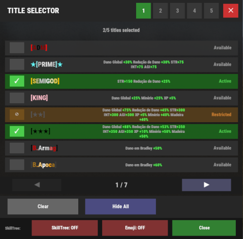 | OnTitleDeselected(BasePlayer, string) | Title Selector | Deactivates perks for the deselected title |