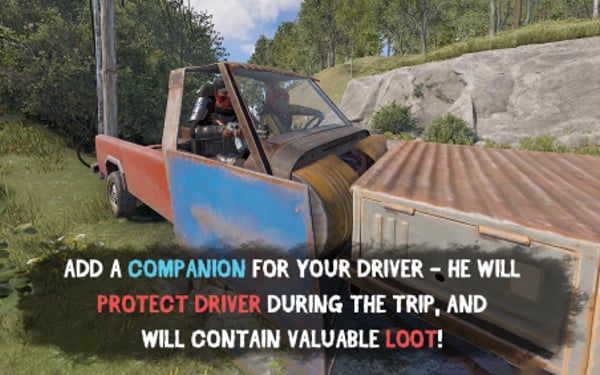 • Customize driver & companion inventory – weapons, clothes, and other supplies.