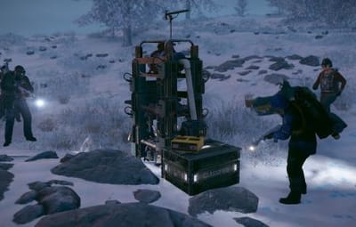 The event begins with a chat warning explaining that scientists studying the arctic area of the island have been attacked by vicious animals and need to quickly be evacuated. Since leaving in such a hurry, they left their drilling rig behind, which extracts a lot of profitable resources, currently the location of the rig is not known. Players are able to find and use this rig, since it is left unguarded, but first they have to find it's location. The team left behind three signal receivers at different locations on the island. The player needs to scan each of them sequentially. This won't be as easy as it sounds, utilizing the signal receivers seems to be a big part of what is aggravating the packs of animals nearby that led to the attack. The animals seem so crazed by the signal receivers running that they will attack and try to destroy them when the players use them to triangulate the location of the drilling rig. Players should protect the receivers if they have any hopes to retrieve the location of the rig, they will need to use all three receivers to find it. The rig will need quite a few batteries to run, players should loot these after running each scan. To incentivize keeping these scanners running, loot is provided with each successful scan of the area. The more health each scanner has upon completing the scan the more batteries will be received as a reward. The more batteries are in the rig, the longer it will run and the richer the reward will be in the end.