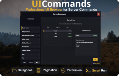 UICommands is a great fit for any Rust server that wants a simple, organized, and player-friendly way to show commands in-game.