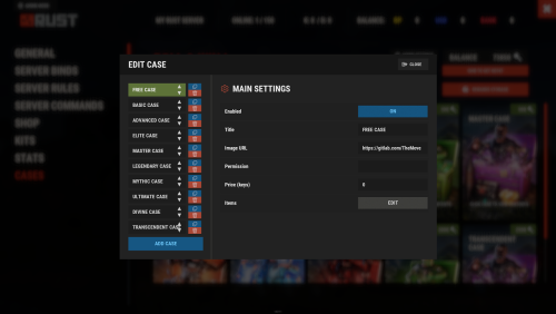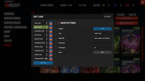 - From here you can create new cases, edit existing cases, add items, configure prices, permissions, and all case settings