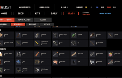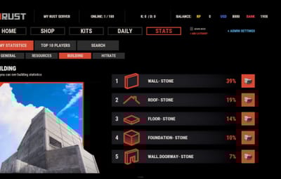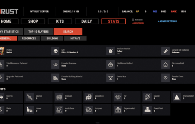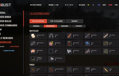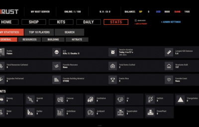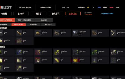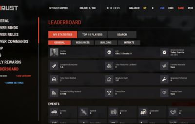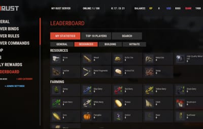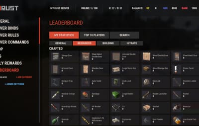 - Track a wide variety of player statistics, including kills, deaths, resources gathered, items crafted, structures built, and more.