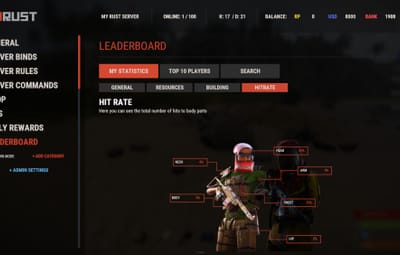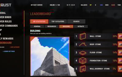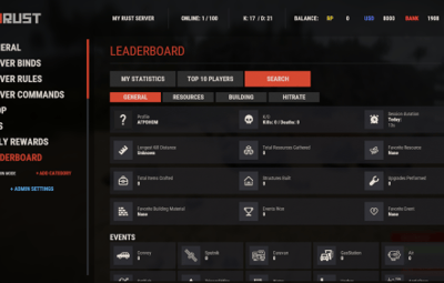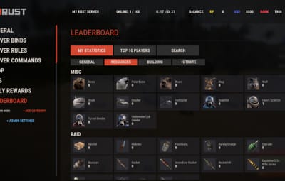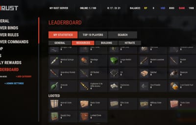 Introducing UltimateLeaderboard, the most advanced and comprehensive leaderboard system designed for Rust servers! Elevate your server competitive spirit by tracking an extensive range of player statistics—everything from kills and deaths to resources gathered, items crafted, structures built, and more. Featuring a sleek, customizable user interface and seamless integration with popular plugins, UltimateLeaderboard is the perfect addition to engage your players and showcase their achievements.