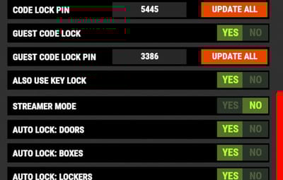 - Create a code lock pin and/or update all your codelock pins with 1 click.