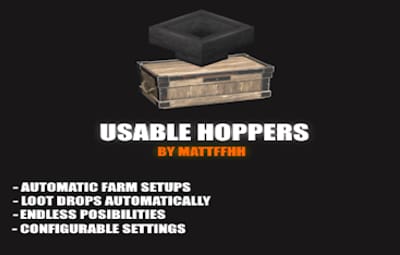 While Usable Hoppers is perfect for setting up an automated horse farm—where it gathers horse poop and deposits it into a composter—it’s versatile enough for other tasks too. Whether you're automating gathering dropped resources, or organizing loot from the battlefield, Usable Hoppers will save you time and effort. The plugin is designed to automate item collection directly from the ground, making resource management in your base smoother and more efficient. Usable on regular chests, furnaces, lootable crates and even airdrops.