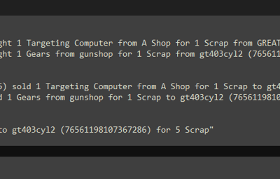 Note: when logging purchases from the Drone Market, Vending Buys does not record the seller, cost or currency of the sale, only who bought what item(s).