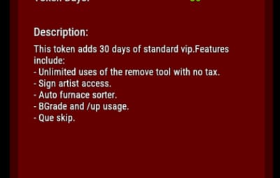 - Fail safes to prevent abuse, restrict the amount of VIP time for each token (configurable), and prevent overlapping of existing group access (configurable).